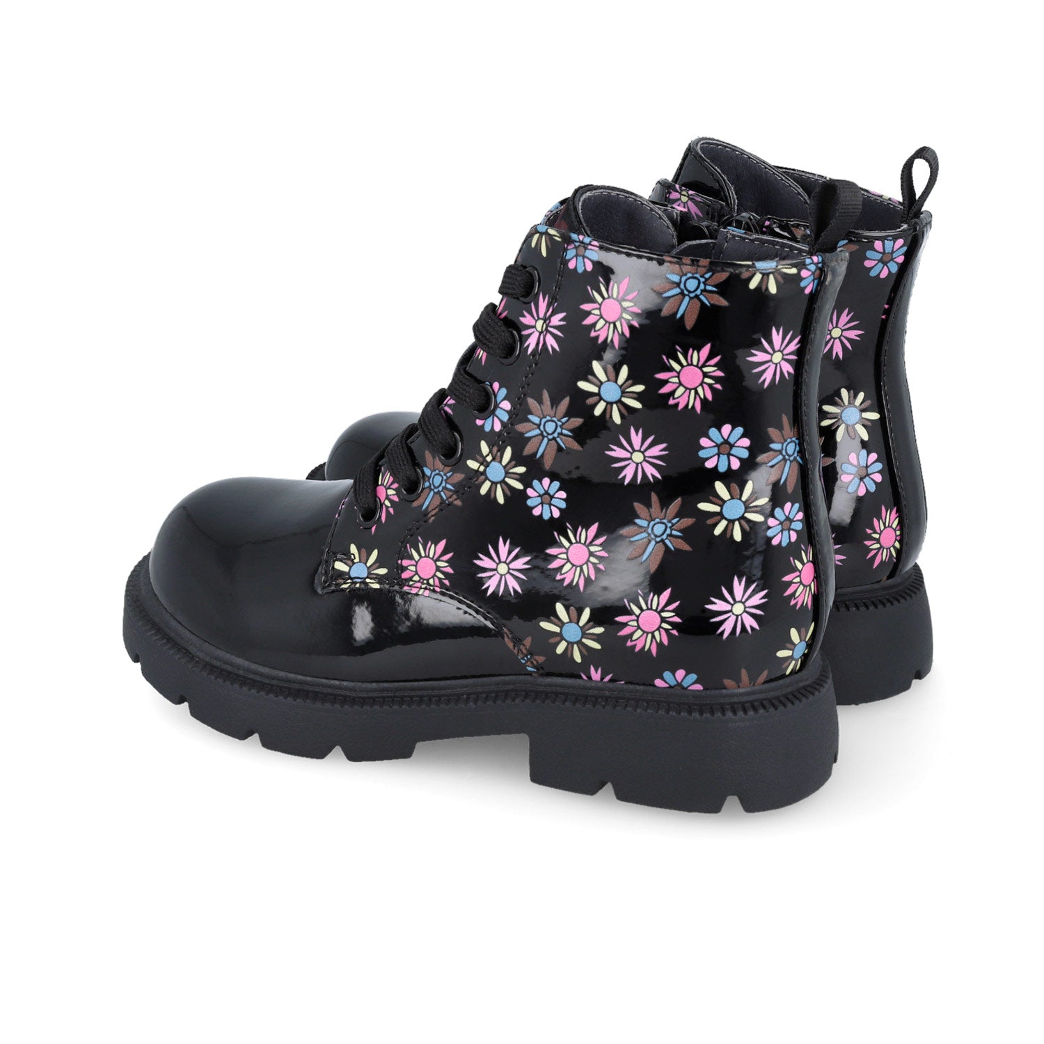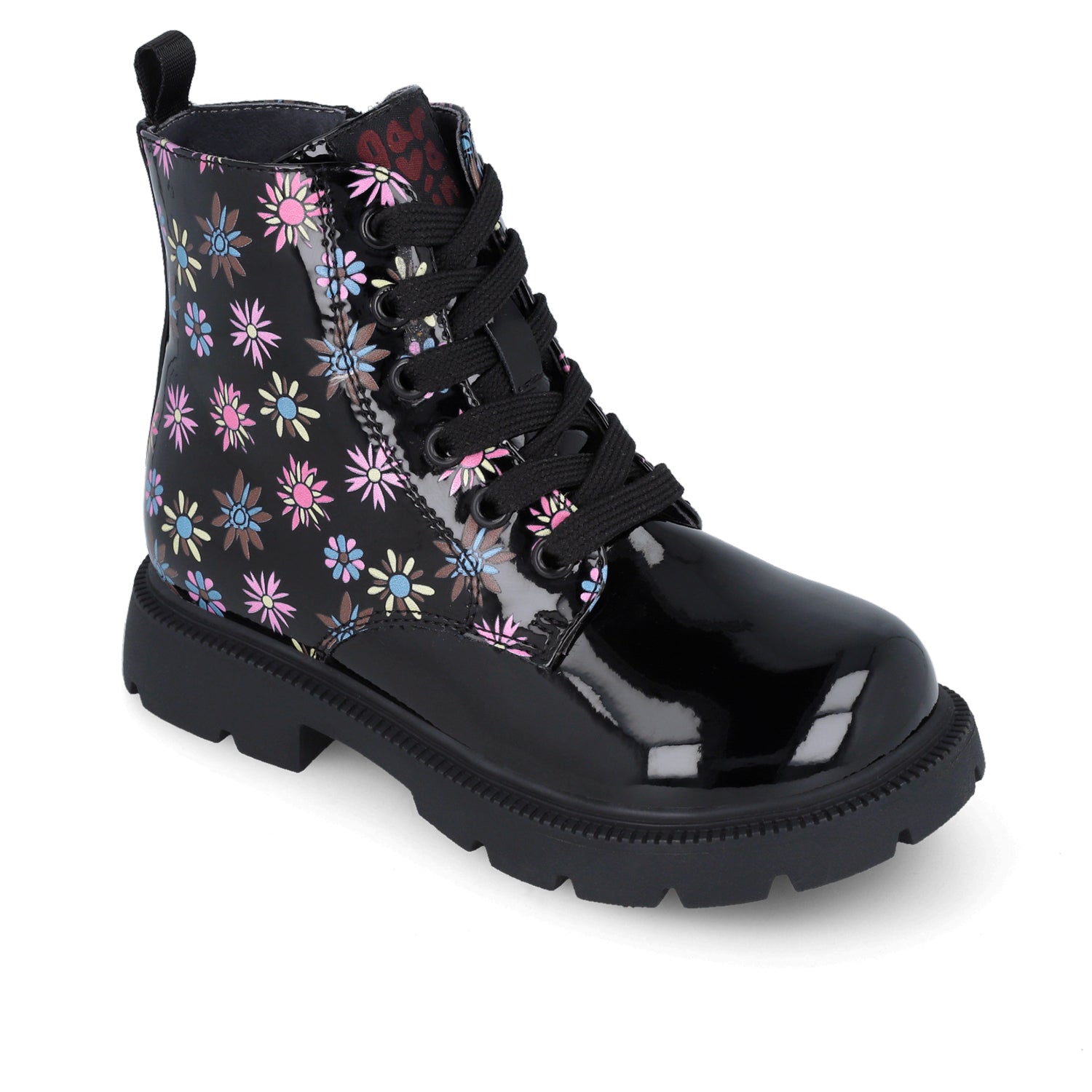 Αυτό το εντυπωσιακό παιδικό μποτάκι συνδυάζει τον κομψό μαύρο λουστρίνι σχεδιασμό με διασκεδαστικό floral print σε παστέλ αποχρώσεις. Ένα statement κομμάτι που δίνει χρώμα και στυλ σε κάθε εμφάνιση, ενώ προσφέρει άνεση και στήριξη για όλη τη μέρα.