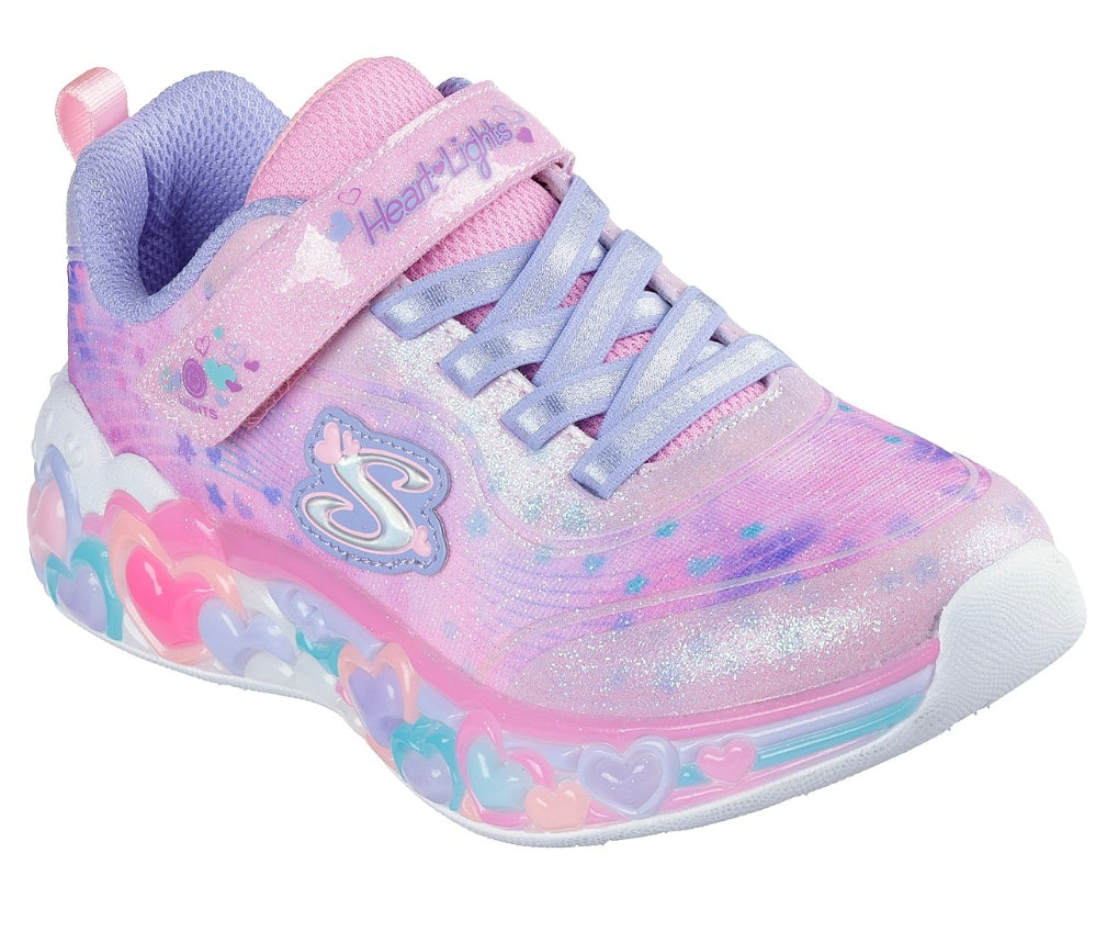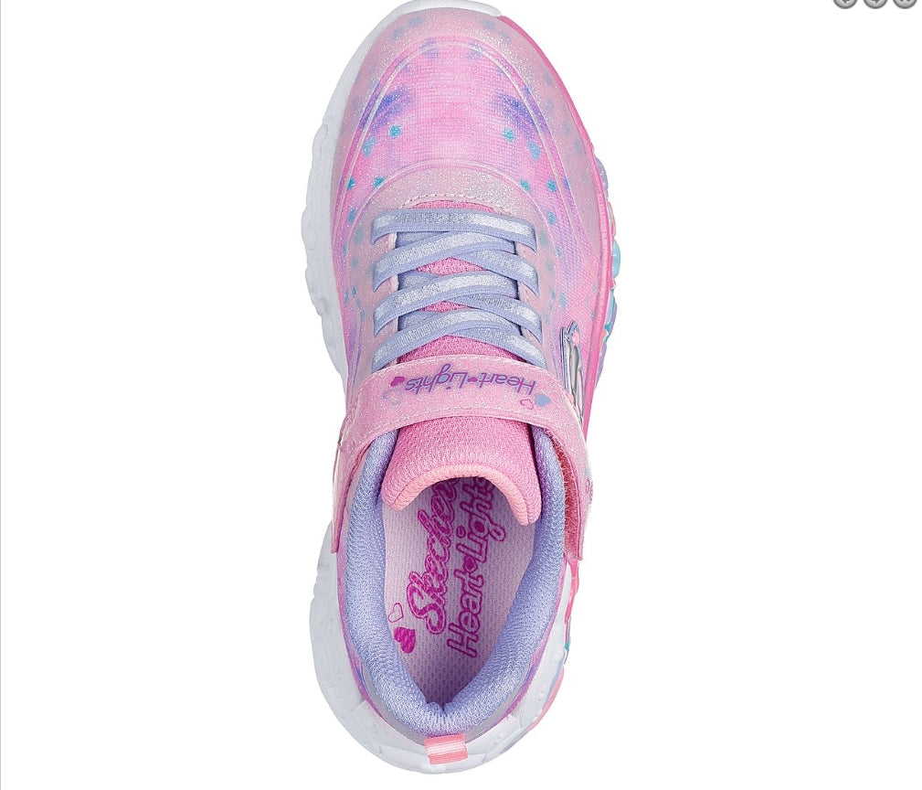 Λάμψτε μαγικά φορώντας τα Skechers® Heart Lights® Eternal Heart Lights. Αυτός ο φωτεινός σχεδιασμός διαθέτει σατέν κορδόνι και λουράκι με λαμπερές πλεγμένες γκλίτερ επικαλύψεις, προσαρμοστικό κλείσιμο Skechers Adaptive Closure για εξατομικευμένη εφαρμογή και σμιλεμένη φωτεινή ενδιάμεση σόλα με λεπτομέρειες «καρδιάς».