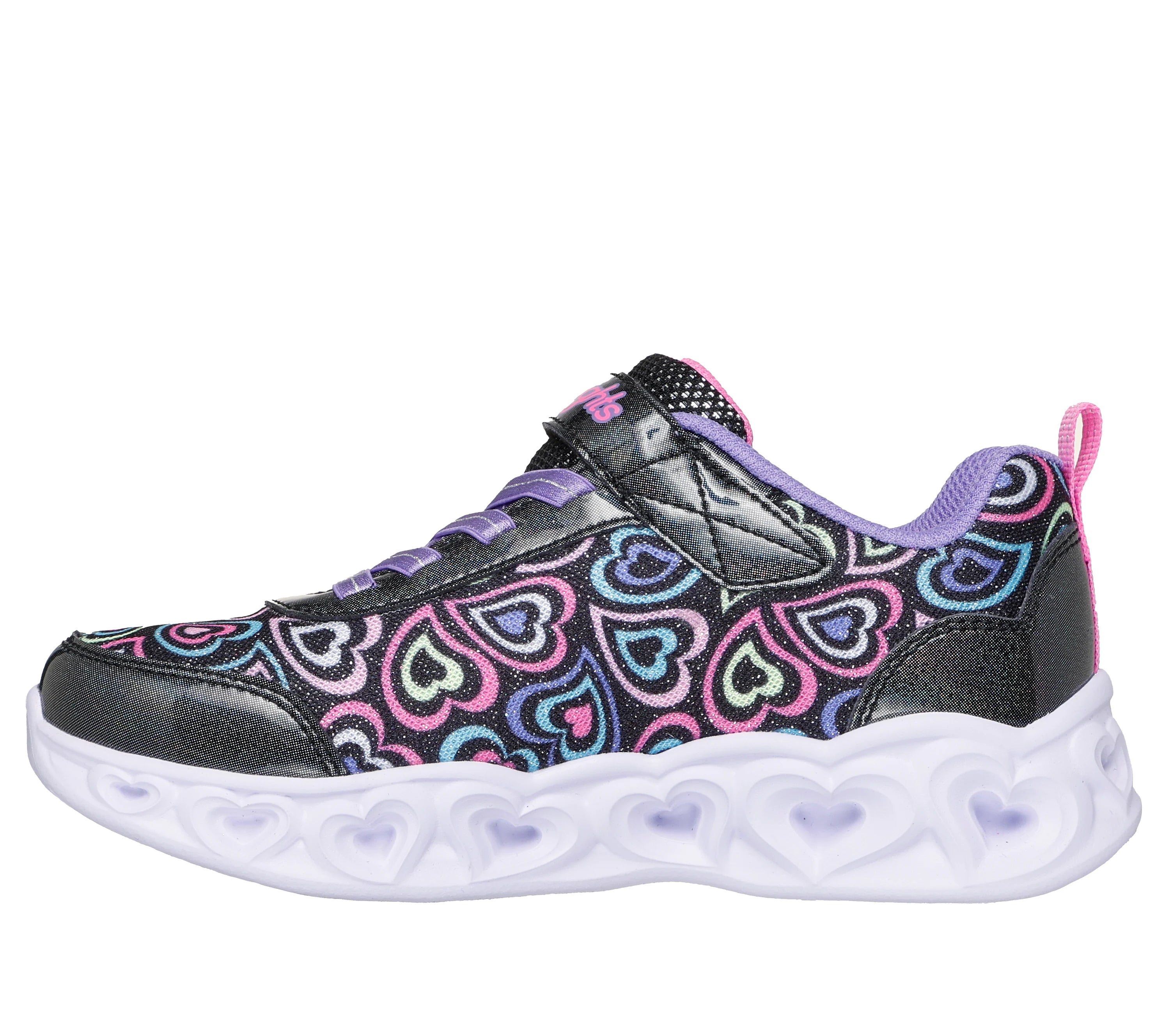Χαρίστε τους τη λάμψη και τη διασκέδαση των Skechers Heart Lights - Boogie Love. Αυτά τα πολύχρωμα αθλητικά παπούτσια διαθέτουν λαμπερό συνθετικό επάνω μέρος με τυπωμένες καρδούλες, σταθερά ελαστικά κορδόνια και Adaptive Closure, καθώς και μεσαία σόλα με φωτιζόμενες καρδούλες.
