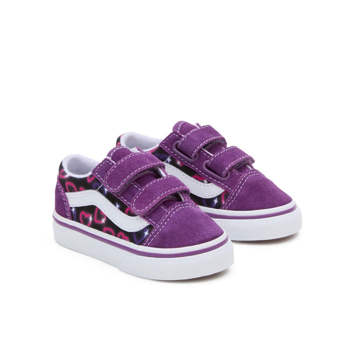 Το Toddler Old Skool V επαναπροσδιορίζει το εμβληματικό παπούτσι Sidestripe, αντικαθιστώντας τα παραδοσιακά κορδόνια με διπλά velcro. Φτιαγμένο με το χαρακτηριστικό σουέτ και καμβά στο πάνω μέρος με ένα σχέδιο καρδιάς νέον, αυτό το χαμηλό στυλ διατηρεί την κλασική του γοητεία, ενώ παρέχει εύκολη και ασφαλή εφαρμογή που θα κρατήσει το μικρό σας άνετο όλη μέρα.